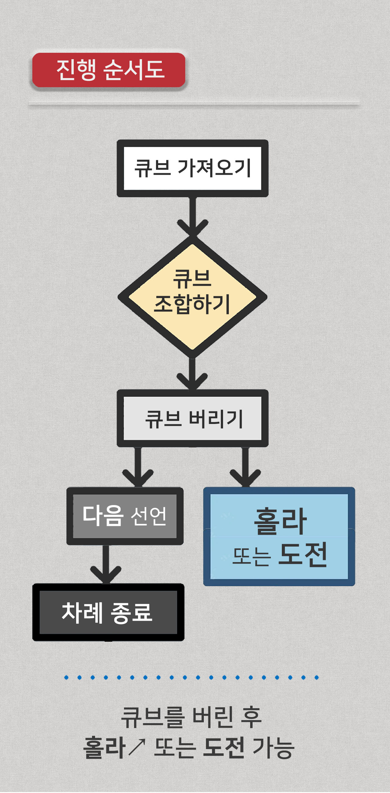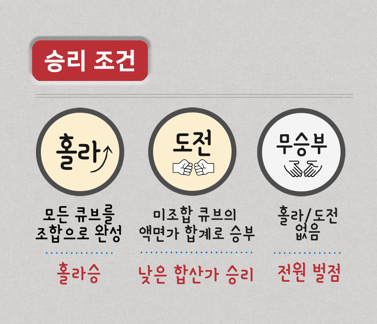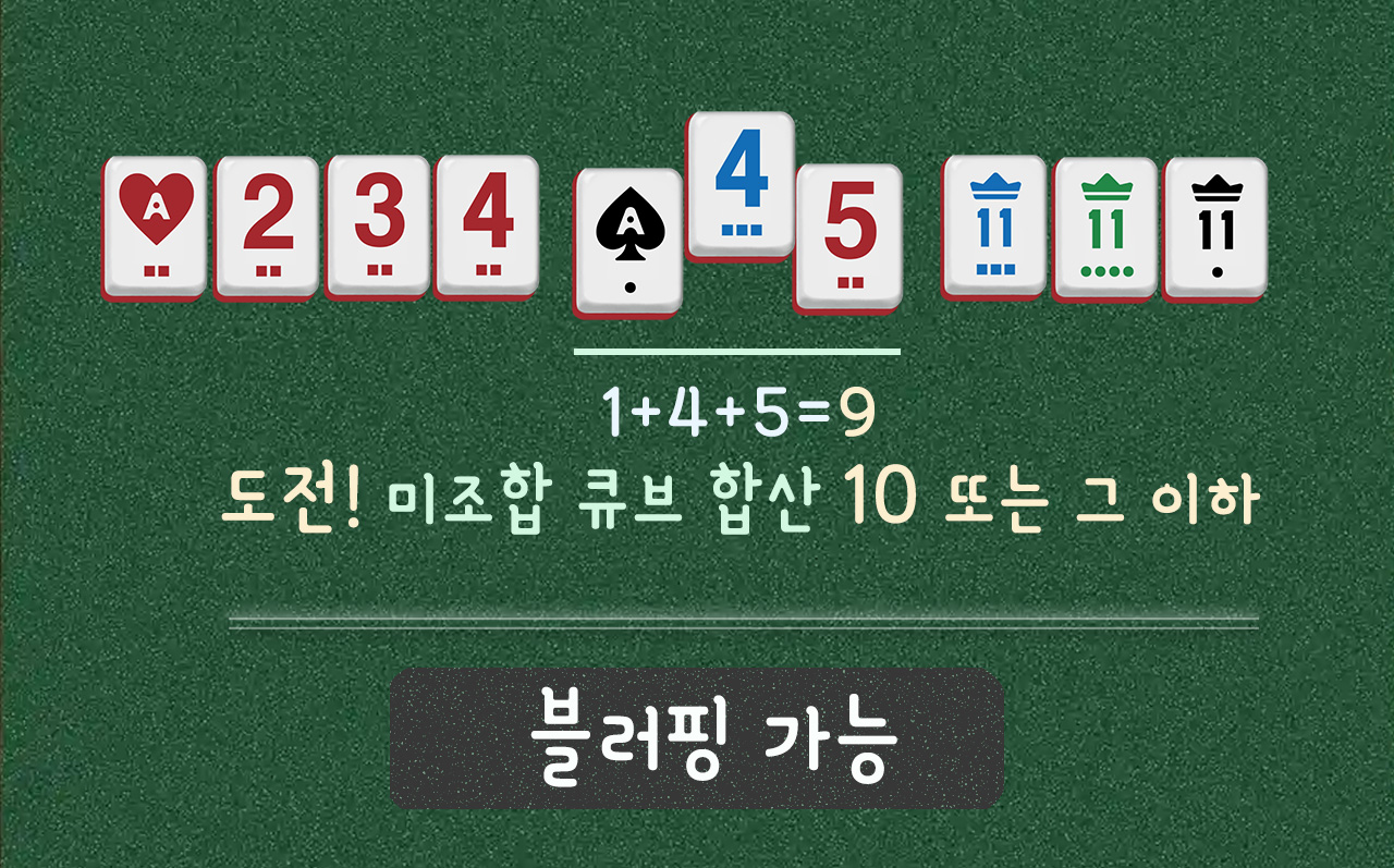내 큐브는 언제나 10개를 유지해야 합니다. 만약 라운드 중 큐브 숫자가 일치하지 않을 경우 벌점 10점이 부가됩니다.